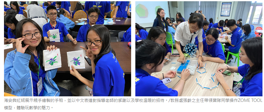繼之,由臺南慈中教務處張齡之主任帶領營隊同學來到數學教室,操作ZOME TOOL模型,體驗玩數學的魅力。學生們在立體教具組裝中,發揮手腦並用的創造力,在齡之主任的引導下,營隊老師也加入挑戰,師生一起實踐「玩」的教與學。