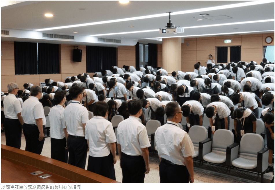 新生成長營的最後的圓緣典禮,學校贈送給每班一張大合照,期許孩子們透過三年的努力,可以看見自己的不一樣與成長。此外,此次的新生系列活動也是因為天災的緣故而延期,師長們帶領孩子們以慈大附中的校訓:「慈悲喜捨」為核心,虔誠祈禱,希望天下平安無災難。最後在琅琅的慈中校歌聲中,圓滿地完成113學年慈大附中新生成長營。