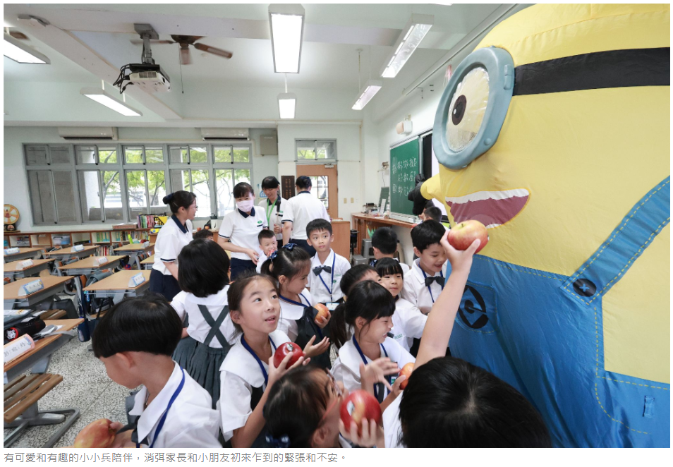 一進入校門便看到可愛的小小兵熱情的和大家打招呼,老師也以溫柔燦爛的微笑引導,消弭家長和小朋友初來乍到的緊張和不安。