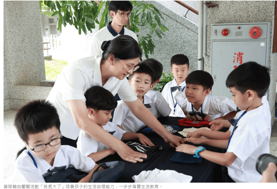 慈濟教育從生活教育著手,學校對於服裝儀容和環境整潔的規定相當嚴謹,藉由闖關活動「我長大了」培養孩子的生活自理能力,從最基本的摺衣服、拿外套……開始,一步步落實生活教育。一年知足班鄭向恩同學分享:「謝謝溫柔的雯雯老師耐心的教導我們許多禮儀及知識,我很喜歡友善的同學,我也很喜歡慈小的學習生活,希望能每天開心的來上學。」