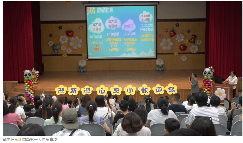 校長李玲惠表示小一寶貝們即將展開人生嶄新的一頁,校長提醒家長們孩子每天回家抱抱孩子,說說話正面鼓勵孩子每天的收穫。鼓勵結交新朋友,帶著好奇心和熱情,學習各種新知識,在同學和老師們的陪伴下,必能擁有美好快樂的小一新鮮人生活。