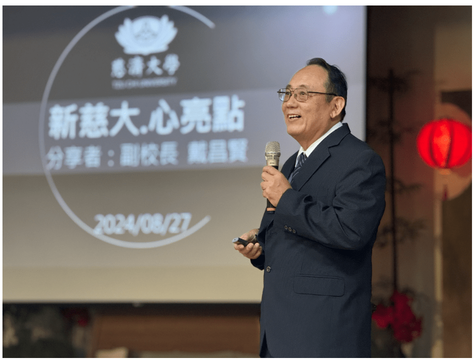 今年八月一日才上任到慈大的戴昌賢副校長,就任27天馬不停蹄參與各地的迎新茶會,臉上永遠掛著和藹、熱情的笑容,不因辛勞而減緩。戴副校長表示,慈大重視慈濟人文,追求卓越研究,尤其是師生跟著慈濟慈善腳步遍及全球,善盡社會責任。「幫助別人其實收穫最大是自己。」戴昌賢副校長說,慈大學生做志工幫助人家,在上人和慈濟志工的引領,典範學習,讓學生可以體會到人生的真實意義。