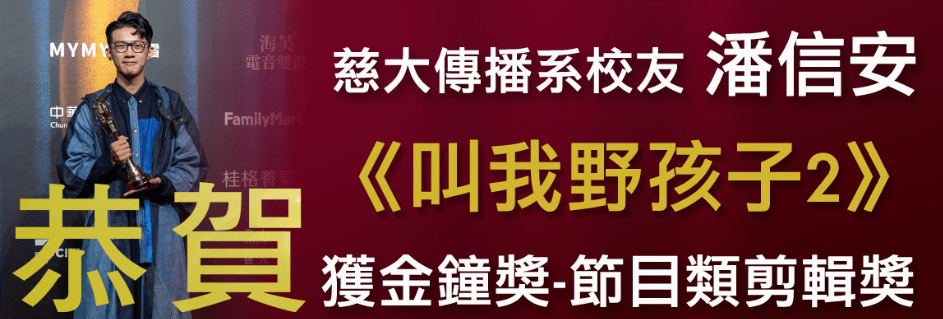 第59屆金鐘獎節目類頒獎典禮18日登場,節目類剪輯獎由《叫我野孩子2》潘信安拿下,潘信安為慈濟大學102級傳播系校友。獲知潘信安敲響金鐘的第一時消息,師生們便紛紛透過社群媒體分享這好消息,讚許潘信安真是「慈大之光」。