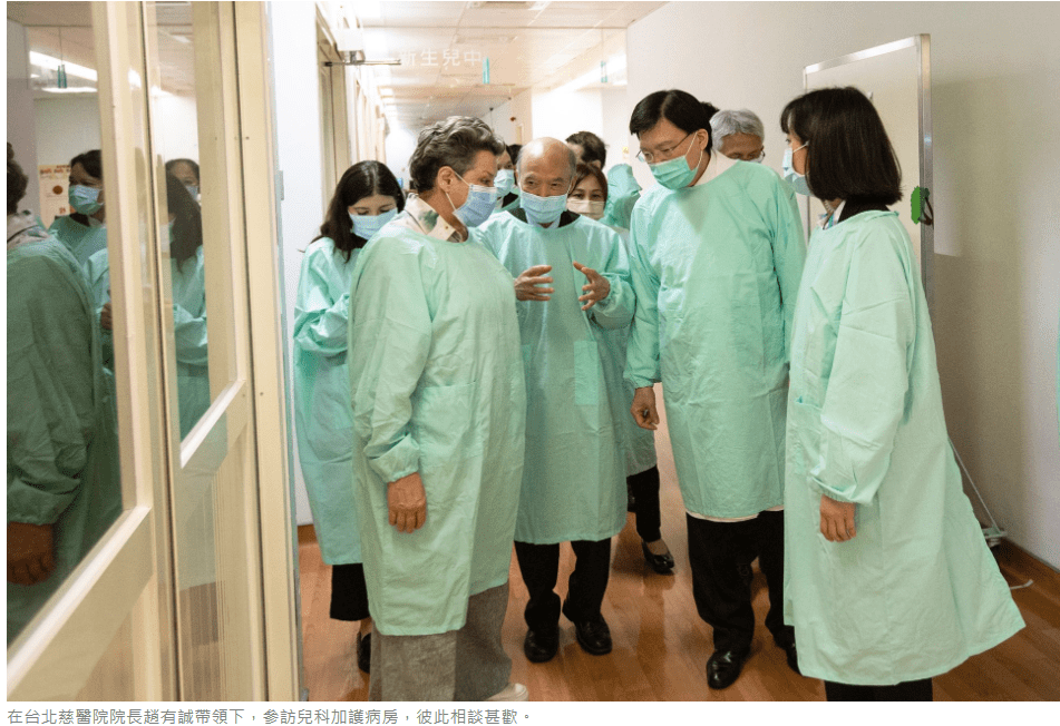 贈書典禮後,身為醫師的瓜地馬拉第一夫人Dr.Lucrecia Peinado,長期致力於兒童早期發展障礙、減少孕產婦死亡的衛生健康管理等,特別參訪醫療品質優異的台北慈濟醫學中心兒科相關部門。在台北慈濟醫院院長趙有誠、副院長鄭敬楓、副院長楊緒棣、兒科部主任余俊賢等人的陪同下,參訪兒科加護病房,彼此相談甚歡。