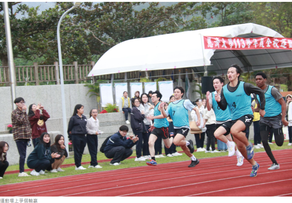 比賽陸續展開,獲得100公尺男子組第一名的物治系許哲瑜說,短跑需要練習敏捷度,專注在自己,平時就會練習體能和分配時間。男子組200公尺國際數媒學程cledon Jaidon說,每天花30分鐘的時間跑步,跑步已經是生活的一部份。