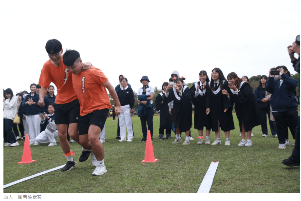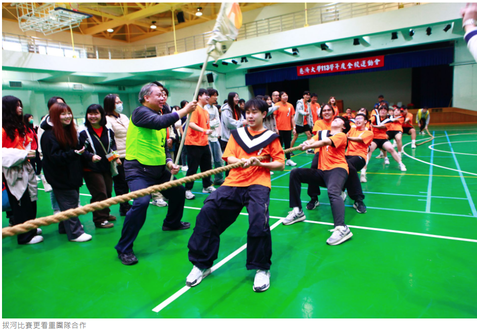 今天運動場上進行田徑比賽、拔河和趣味競賽。護五四E穿著雪寶、頑皮豹、史帝奇等卡通服,還沒下場就吸引大家目光。黃俼嫻同學很自豪說,平時班上就非常團結,很有默契,參加比賽就是為了創造回憶,因為這是最後一年在學校的運動會。場上同學拼勁,場外的社工系四年級穿著畢業服為同學加油。社工系林詩佳說,每年運動會,看著大家一起努力,一起拿下精神總指標,是大學很好的回憶。