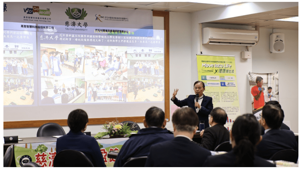 簽約會上,慈濟大學體育教學中心温蕙甄教授也分享慈大青盈健身俱樂部的成果,温老師表示,慈大開設環狀課程主要是透過科學根據研發的運動計畫,透過團體運動,提升參與者的腦身心健康,健康品質提升後更有能力利益眾生。感謝高登智慧科技及石資中心與慈濟大學共同合作,提供相關設備及資源,為高齡團體的健康共同努力,讓長者們都能健康、樂活。