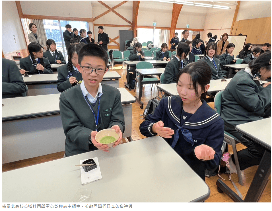 慈中則以校歌手語表演作為回禮。值得一提的是,盛岡應援團攜手全體二年級學生演唱校歌,氣勢磅礡,展現他們對此次交流的高度重視。兩校學生還透過英語學習台灣與盛岡之間的歷史連結,並分組入班共同上課、用午餐,短短幾個小時的互動,再次鞏固了彼此的友誼。