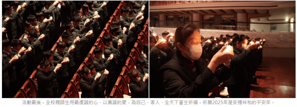 最後在精舍師父的帶領下,中學部師生以虔誠的心凝聚善念,共同祈願2025年是安穩祥和的平安年。