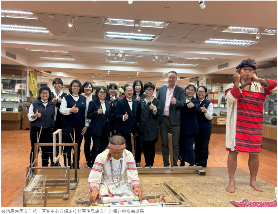 隨後,貴賓們前往校史館及原住民文化館參觀,原資中心詳細介紹了慈大在保存與推廣原住民族文化方面的努力,展示豐富的原住民族歷史與文化資產。此舉不僅讓貴賓們深入了解慈濟大學的文化底蘊,也凸顯了慈大對多元文化的尊重與支持。