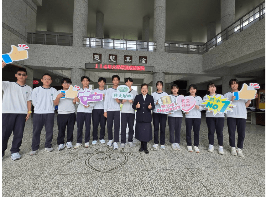 慈大附中114學年度學測25日成績放榜,一百九十多位高三學生赴考,112人次達單科頂標,每四位學生就有一位單科頂標;以申請入學採計四科三種組合科目計算,四科總加超過50級分的有26人次,其中更有5人總級分超過55;慈中校長李玲惠恭喜學生,也表示放榜的同時,輔導、教務等課室隨即展開升學輔導,要讓每位學生的點滴努力獲得最大的效益。