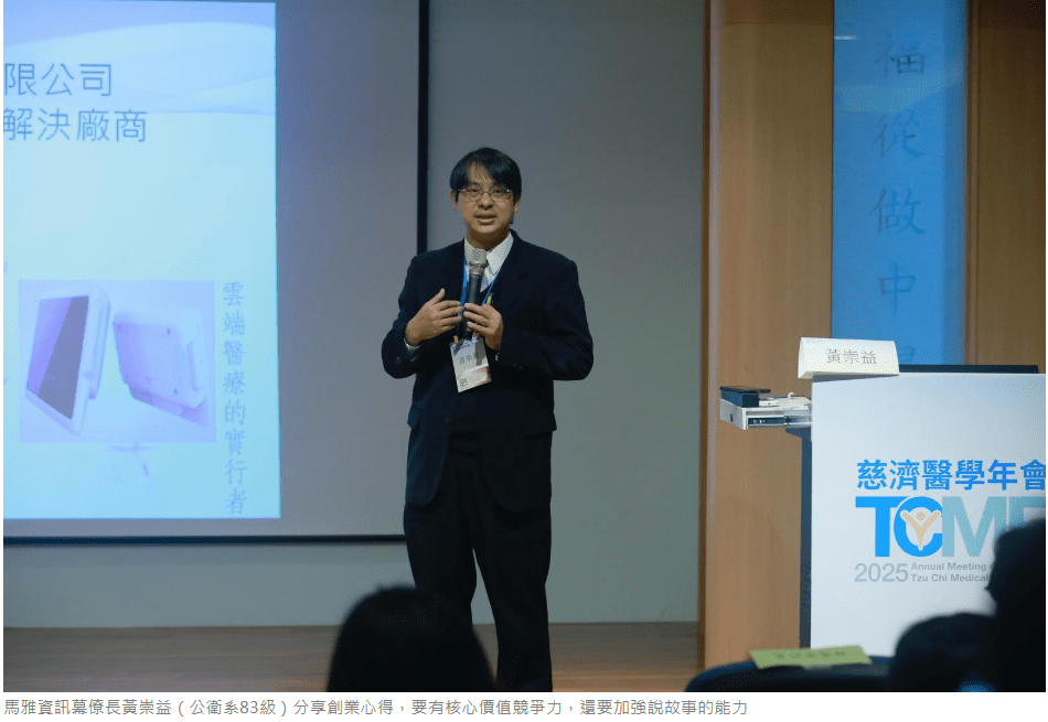 馬雅資訊幕僚長黃崇益(公衛系83級)表示,透過智慧物聯網技術,可連接血液透析、呼吸、麻醉、護理資訊等專科化系統,並自動擷取上傳臨床數據,不但提升醫護人員的效率,後續也能應用大數據分析並整合醫療資訊。黃崇益更加碼分享創業心得,要有核心價值競爭力,還要加強說故事的能力,找尋天使投資人,獲得第一桶金。