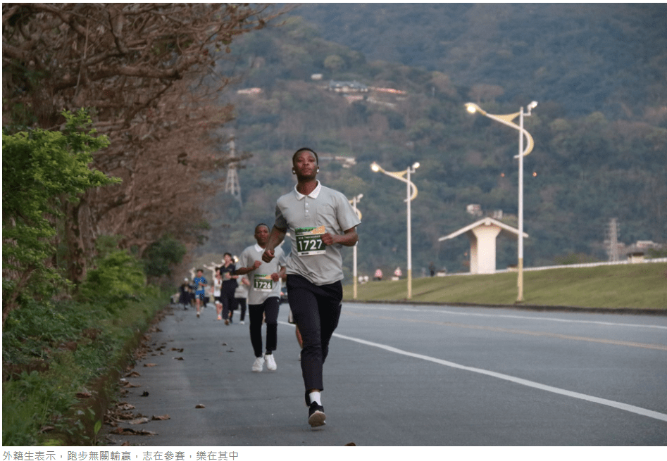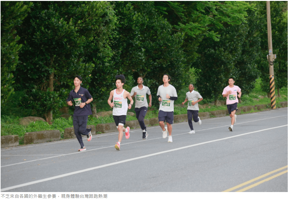 路跑隊伍中,不乏來自各國的外籍生(賴索托、莫三比克、印尼、菲律賓等)報名參賽,親身體驗台灣路跑熱潮。經營管理學系一年級學生木漢德(莫三比克籍)表示,跑步無關輸贏,只是志在參賽,並樂在其中。