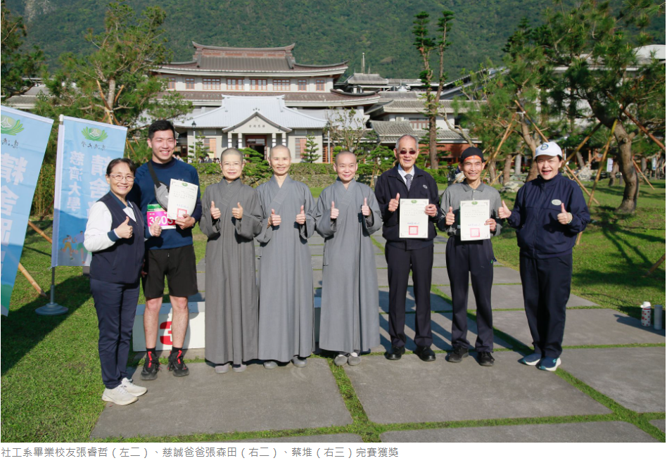 副學務長溫蕙甄以50分14秒完賽,拿下教職員女子組第一名,她表示,千里之行始於足下,只要專注於當下,不停下來,就會抵達終點。期待更多校友和學生一起參與慈大精舍路跑,讓創校至今的傳統綿延下去。