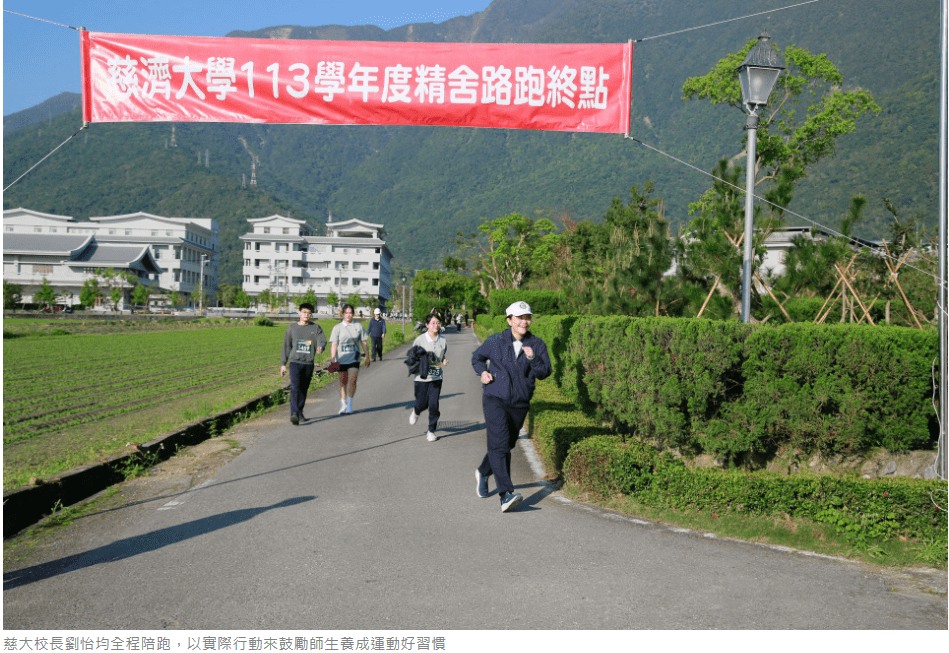 將近十公里的路程,從建國校區出發,順著鄉間小徑,學生大口呼吸清新的空氣,賣力向前,沿途田野風光盡收眼底。慈濟大學校長劉怡均也全程陪跑,以實際行動來鼓舞師生養成運動的好習慣。