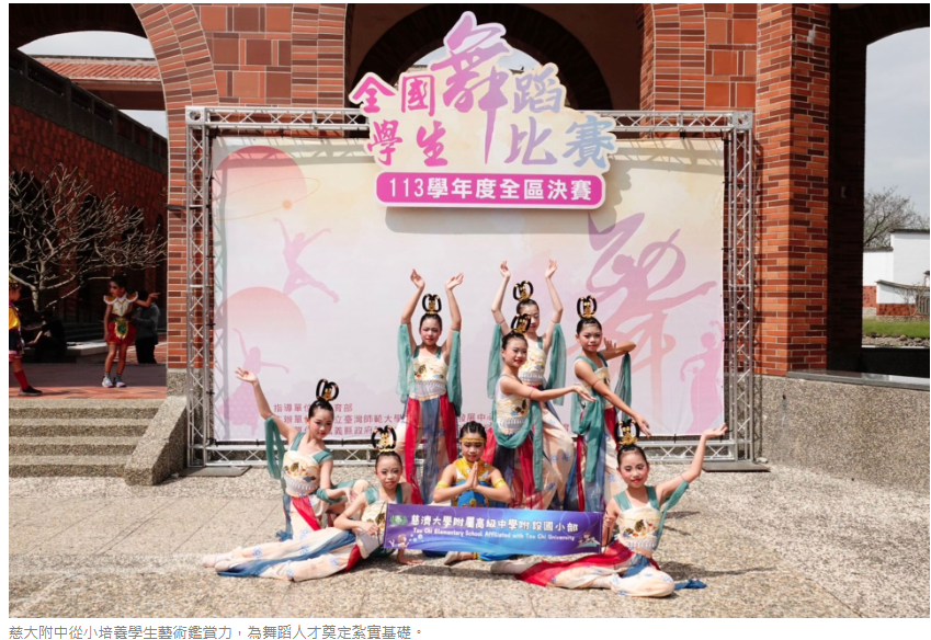 慈大附中日前代表花蓮縣至嘉義縣表演藝術中心,參加一一三學年度全國學生舞蹈比賽,舞出亮麗成績,國小B團體丙組古典舞、國小B團體乙組古典舞、國中B團體乙組古典舞、高中B團體丙組古典舞四支舞碼同時拿下優等佳績,在各縣市舞林高手精銳盡出之下,連續四年國小、國中、高中同時奪得全國賽優等佳績,展現深厚的舞蹈實力,也為慈大附中締造難得紀錄。