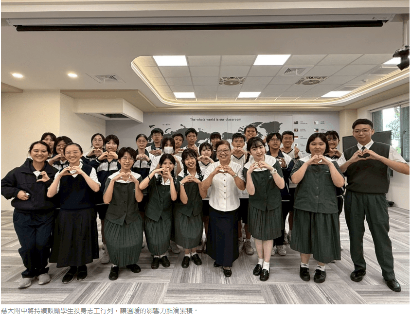 志工精神在慈中綻放光芒!花蓮慈大附中學多位學生榮獲「台新青少年志工菁英獎」及教育部青年發展署青志獎,本日辦理得獎學生傳承分享會,學生以真誠動人的服務故事,激勵學弟妹將助人行善的理念化為日常行動,延續慈中「慈悲為懷、行善利他」的人文精神。
