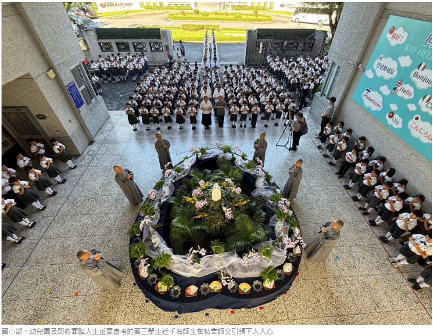 為慶祝一年一度「佛誕節、母親節、全球慈濟日」三節合一,慈大附中於5月15日在校內舉辦「2025年浴佛感恩祈福會」,國小部、幼兒園及即將面臨人生重要會考的國三學生,近千名師生在精舍師父引領下,共同禮佛祈福。