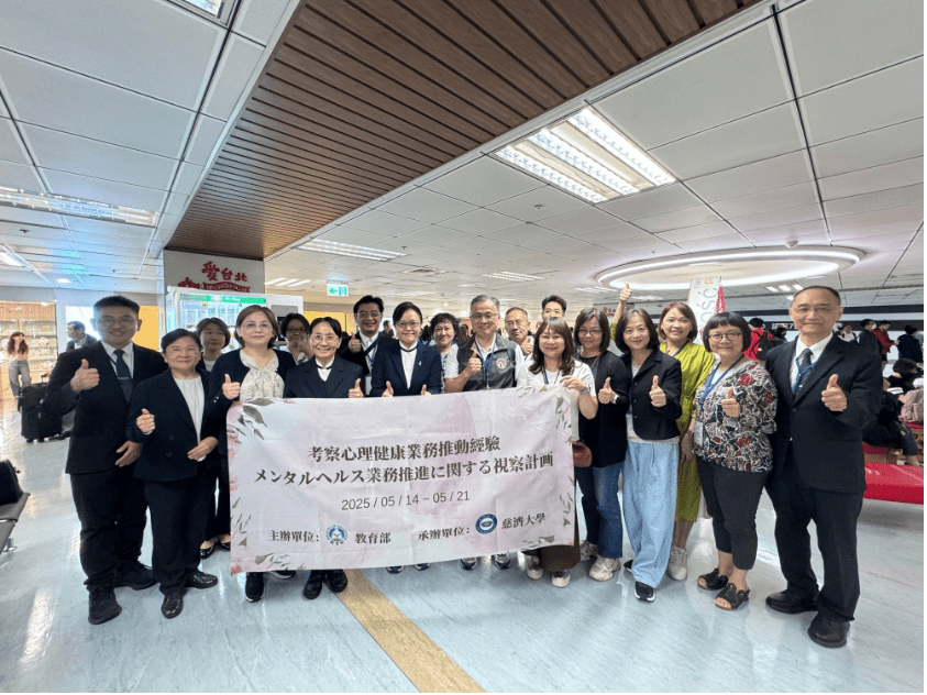 為建立完善的心理健康服務體系,提供學生更堅實的保障,在教育部學生事務及特殊教育司吳林輝司長與慈濟大學劉怡均校長共同領隊下,由全台九所大學組成的「心理健康及特殊教育推動交流考察團」於5月14日啟程前往日本東京,展開為期八天的國際參訪與交流行程。