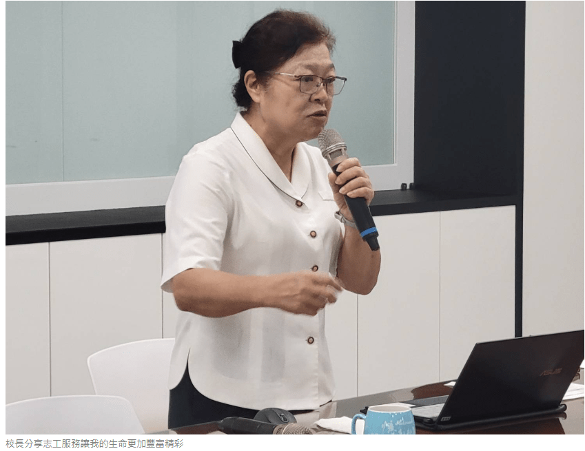校長李玲惠表示,「台新青少年志工菁英獎」是全國性的評選,慈中有七位學生獲獎,李咏欣與黃崇恩同學從全國2000名參賽者中脫穎而出,入圍全國前30名,李校長以自身年輕時的志工經歷勉勵全體學生,她語重心長地說:「志工服務讓我的生命更加豐富精彩。人生可以選擇平淡,但絕對不能平庸。」她指出,志工並不只是課外活動的一環,更是人生視野與格局的鍛鍊,期勉學生能在服務中找到自我價值與人生志向。