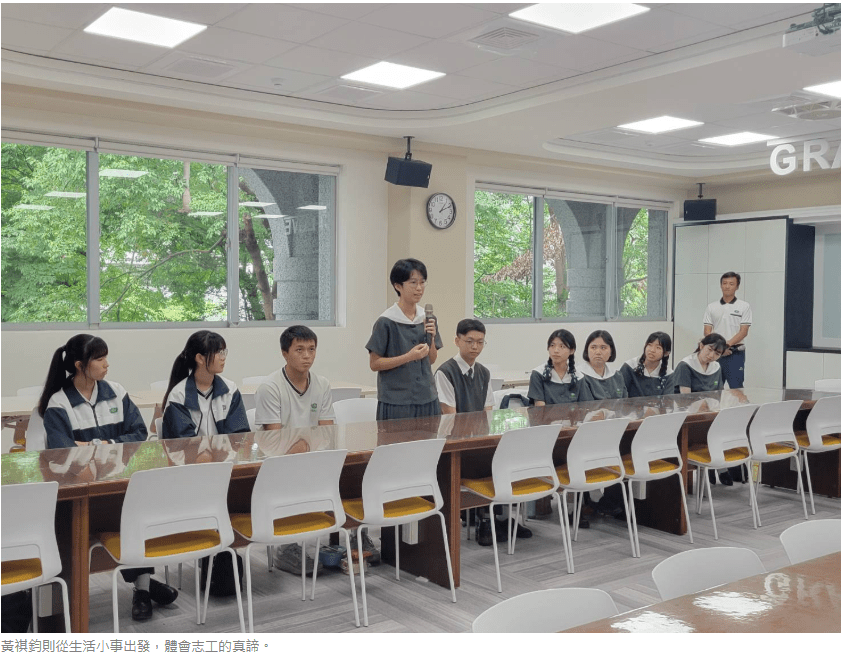 獲得「奉獻獎」的高二學生黃祺鈞則從生活小事出發,體會志工的真諦。她曾參與募集玩偶送至奇美國小,親眼見證災區孩童的堅強與樂觀。她分享:「志工讓我學會知福惜福,也學會分享與造福。」孩子的一句「我長大也要當聖誕老公公」深深觸動她的心,也讓她相信,每一個善意的行動都能在他人心中種下希望的種子。