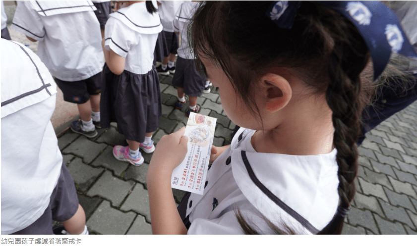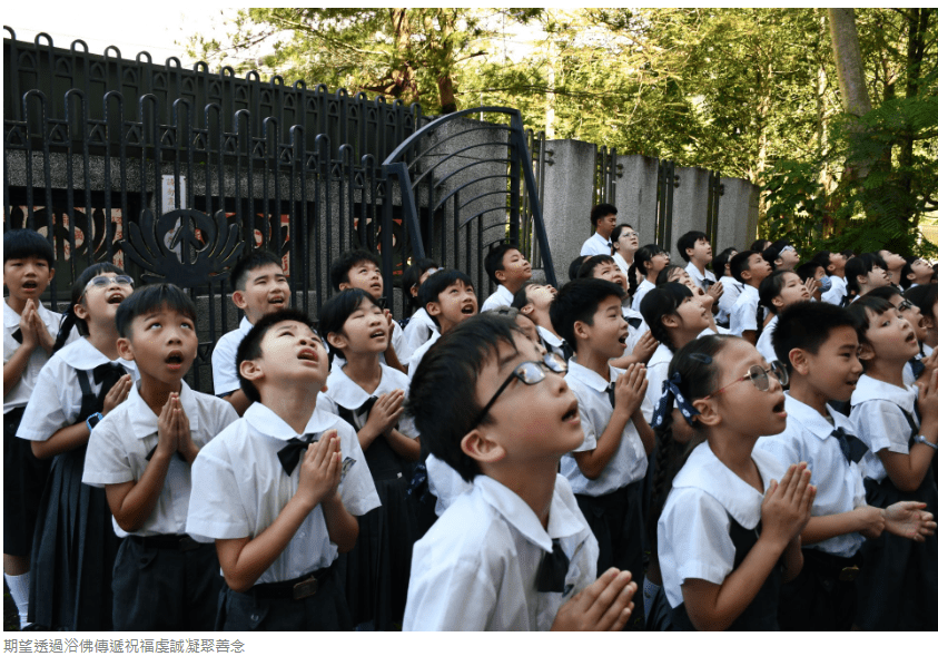 孩子們藉此機會向佛陀表達敬意,並在心中種下善的種子,學習感恩與祝福,為生命教育寫下深刻的一頁,也透過虔誠的儀式凝聚善念,將祝福傳遞出去。