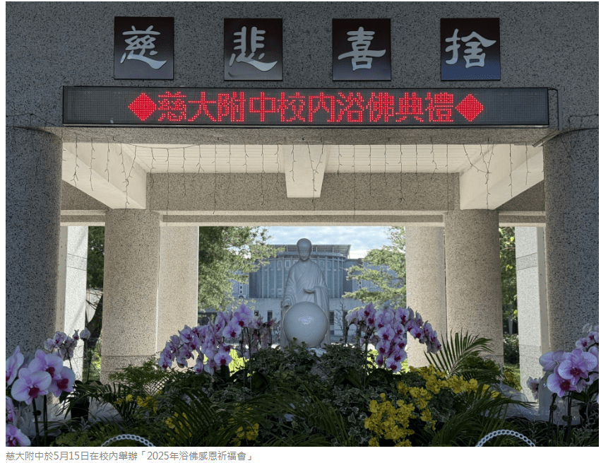 為慶祝一年一度「佛誕節、母親節、全球慈濟日」三節合一,慈大附中於5月15日在校內舉辦「2025年浴佛感恩祈福會」,國小部、幼兒園及即將面臨人生重要會考的國三學生,近千名師生在精舍師父引領下,共同禮佛祈福。