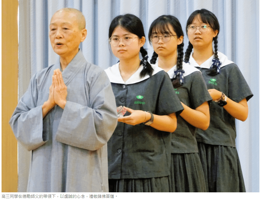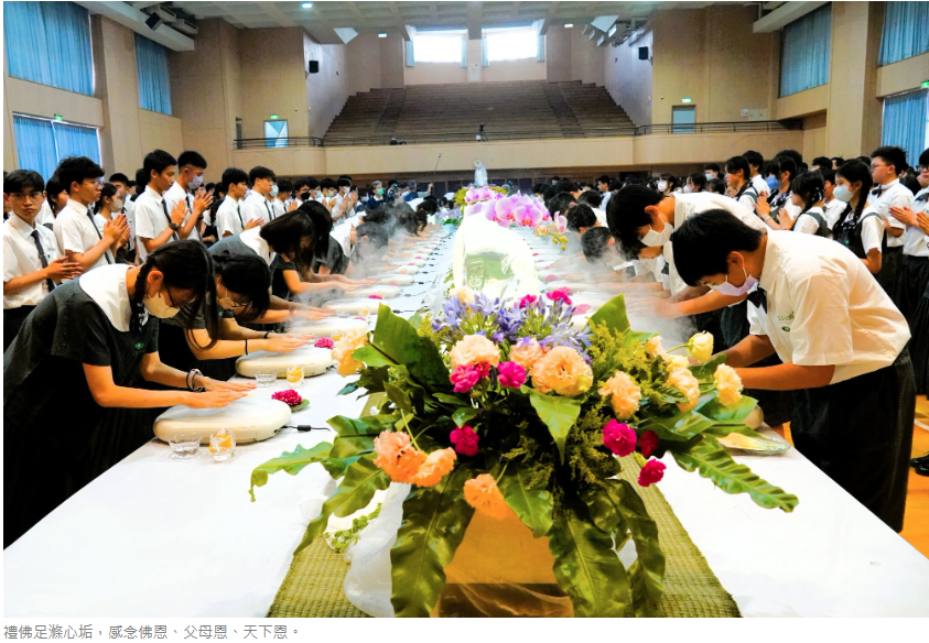 高三學生洪巧恩,不僅協助場地布置,更把握機會承擔獻供。她表示:「從彩排開始就感受到莊嚴氛圍,隨著儀式進行,內心也漸漸平靜。走向浴佛台時,我誠心祈禱家人健康平安。」