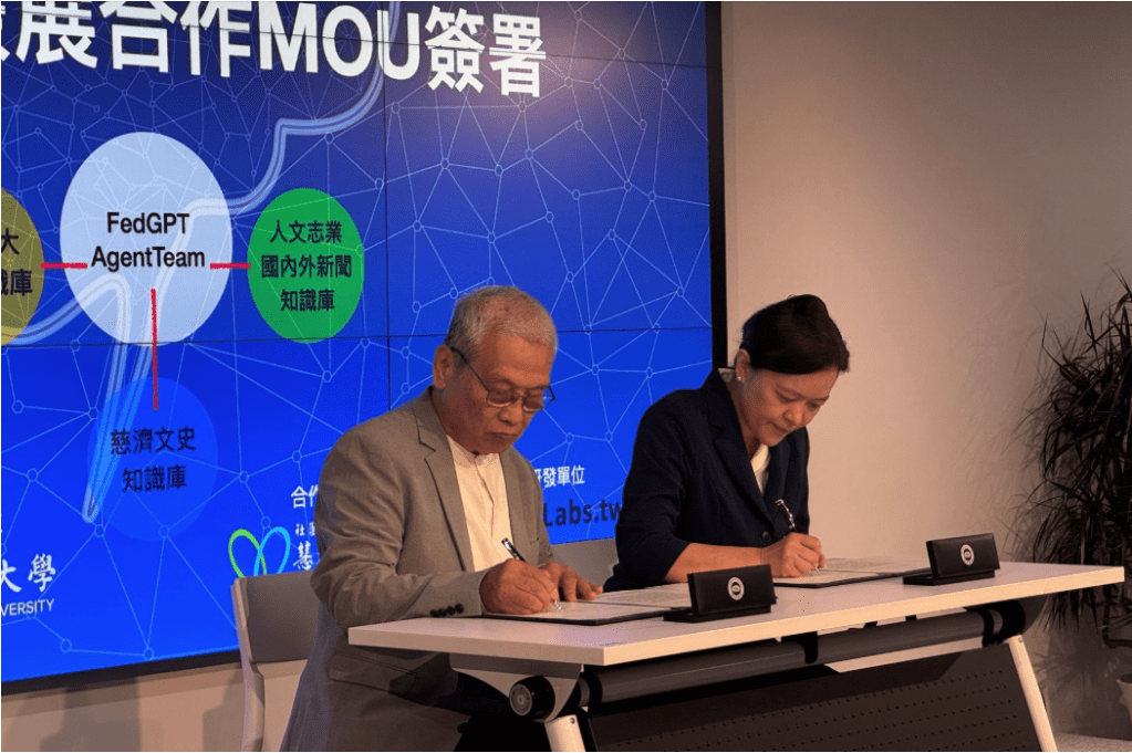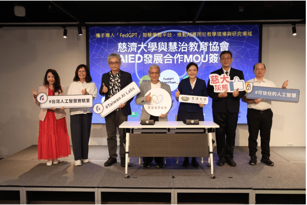 慈濟大學與社團法人慧治教育協會18日正式簽署合作備忘錄(MOU),攜手導入由台灣人工智慧實驗室研發的「FedGPT AgentTeam」智慧學習平台,推動AI應用於教學與研究場域,開啟教育與人文關懷並進的新篇章。