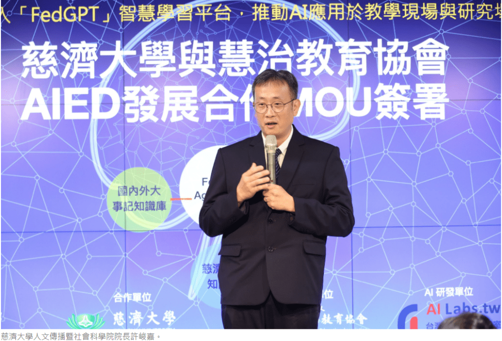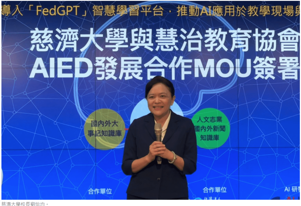 慈濟大學校長劉怡均表示:學校將運用台灣人工智慧實驗室FedGPT平台,提升校務治理與教學研究的智能化,並加強AI倫理與應用教育,確保學生能正確使用AI技術。慈濟大學將培養「會做AI」與「會應用AI」的雙向人才,不僅在理工領域扎根,更推動跨領域整合,培育具人文素養與AI能力的未來人才。慈濟大學期待藉此合作,為台灣AI教育與智慧校務開創新篇章。