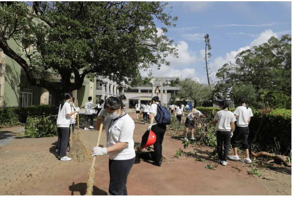 這次風災對我們學校造成了非常嚴重的影響。學校已有123年歷史,校園裡的大樹一棵棵高大挺拔,這次因風勢強勁,倒了十多棵,半倒或傾斜的樹木更是不計其數。