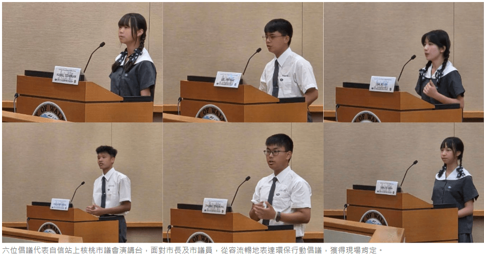 首先,學生代表團在核桃市議會提出了有關環境保育的行動倡議。這次行動由臺南慈中四位與花蓮慈中兩位學生代表擔任主講,從臺灣籌備階段就積極投入。學生們親自撰寫英文講稿,與帶隊老師及美國的黃旭睦(Phi)師兄密切討論內容,經歷多次修訂和反覆練習,甚至在美國的每天晚上還特地留下來集訓,只為在正式場合有最自信、最真誠的表現。帶隊蔡維佳老師表示:「身為老師,看著孩子們一步步從構思、練習,到勇敢地站上正式場合,真的非常感動。透過這次的實地倡議,不僅讓他們對環保議題有了更深入的理解,也讓他們意識到,青年其實擁有改變社會的潛力與聲音。」