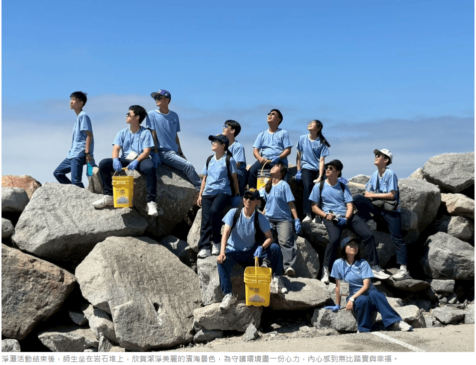 除了議會倡議與座談,學生也親身參與加州Cabrillo Beach的淨灘行動。這項活動由沙灘旁的海洋水族館舉辦,號召志工協力清理海灘。學生們三至四人一組,分頭前往沙灘各處,仔細搜尋沙灘與大石塊縫隙中的垃圾。由於前一天適逢美國國慶,海灘上遺留了不少塑膠袋、瓶罐與煙蒂等廢棄物,大家不怕辛苦,專注地將所有非屬大自然的垃圾都撿拾起來,特別是那些被海浪沖刷後卡在石塊間的雜物,更是全力清除,務求還給海灘潔淨的面貌。國三張同學表示:「原本以為海邊應該很乾淨,實際走訪才發現沙灘上遍布各種垃圾,撿拾過程雖然辛苦,但看到被清理乾淨的海灘,內心感到十分滿足。」他也反思,垃圾多來自人類日常生活,若每個人能多一點環保意識,就能減少對海洋的傷害。