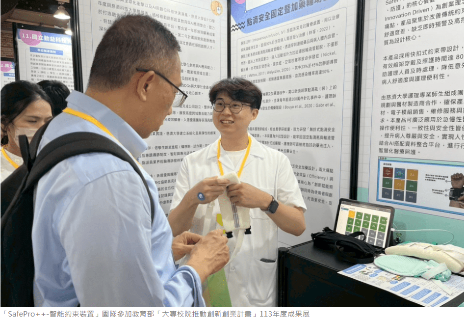 在113學年度成果方面,慈濟大學積極參與教育部主辦的「大專校院創業實戰模擬學習平台」,共推派六組學生團隊參與徵選,最終有三組脫穎而出,獲選為優秀創業提案團隊,並各自獲得新臺幣10萬元創業獎助金。其中,生醫材化領域的「S.E.E.-點滴安全固定暨加藥輔助器」團隊更於「原型產品開發與驗證組」榮獲全國第一名,展現學生在創意發想、產品設計與市場潛力上的高度實力,並成功吸引1,745萬元總注資金額。