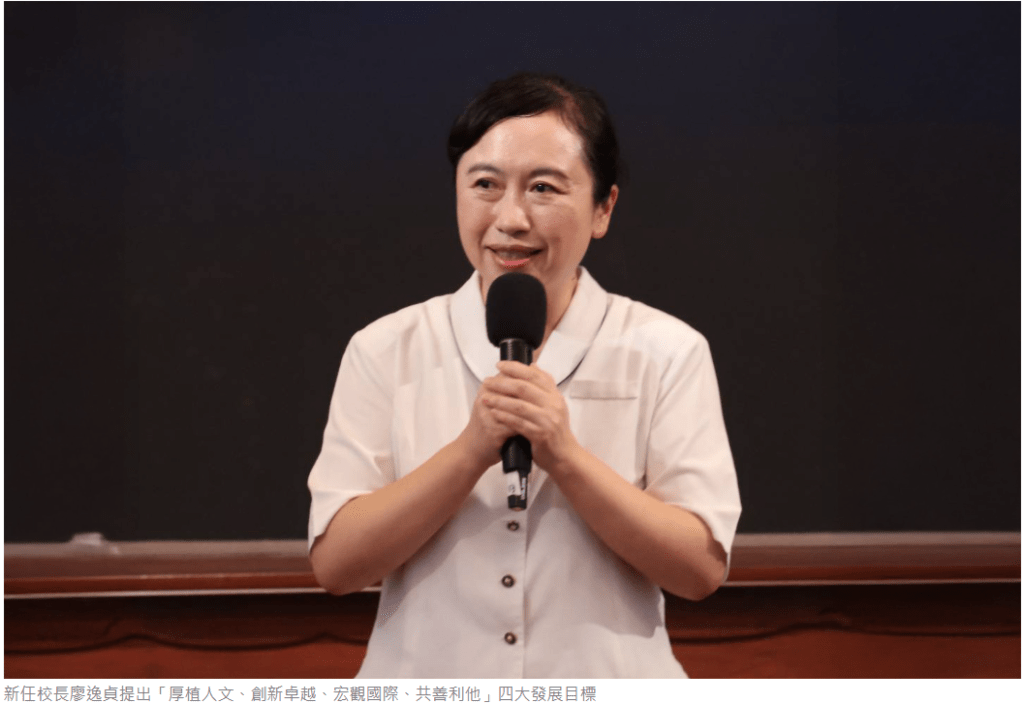 新任校長廖逸貞校長則深情回顧自己與慈濟教育的長久因緣,並表達對未來承擔的承諾與展望。她提到,自己早在大學時期即加入慈濟,至今已有三十一年,教育不只是職業,更是她的志業。八年前曾主持前任李玲惠校長的交接典禮,今日自己正式承接重任,深感責任重大,也滿懷感恩。