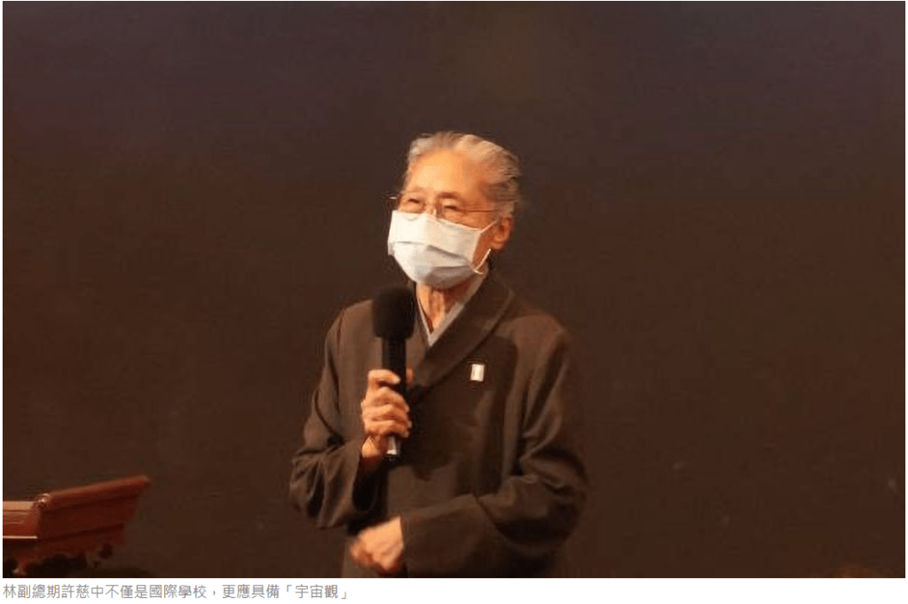 林碧玉副總執行長高度肯定卸任的李玲惠校長八年來的努力與貢獻,對新任廖逸貞校長從慈青學長回歸承擔教育志業表示歡喜與感動,期待慈中與慈濟大學之間能更緊密串聯,並期許慈中不僅是國際學校,更應具備「宇宙觀」。