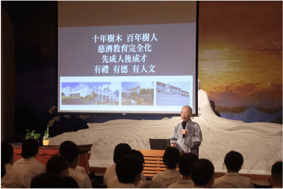 證嚴上人開示中指出,人生在世無常,社會充滿競爭,容易讓人心生苦惱,並因煩惱累積而陷入無明苦難。然而,上人期勉大眾應激發向善的力量。特別是教育工作者,應體現「菩薩行」的精神,將「愛」作為教學的核心。上人強調,老師們應運用真誠的愛與智慧,而非僵化的規範來啟發學生,讓孩子們能在輕鬆、活潑的學習環境中,自在展現其天真與良善。老師對學生的付出,應是一種無所求的愛,不同於父母親帶有的期望,這份無私的愛能讓孩子學習到人生的快樂與成就。透過「修心」引導學子轉化生活習氣,成為一個端莊、充滿喜悅,並懂得愛人愛己的實踐者。