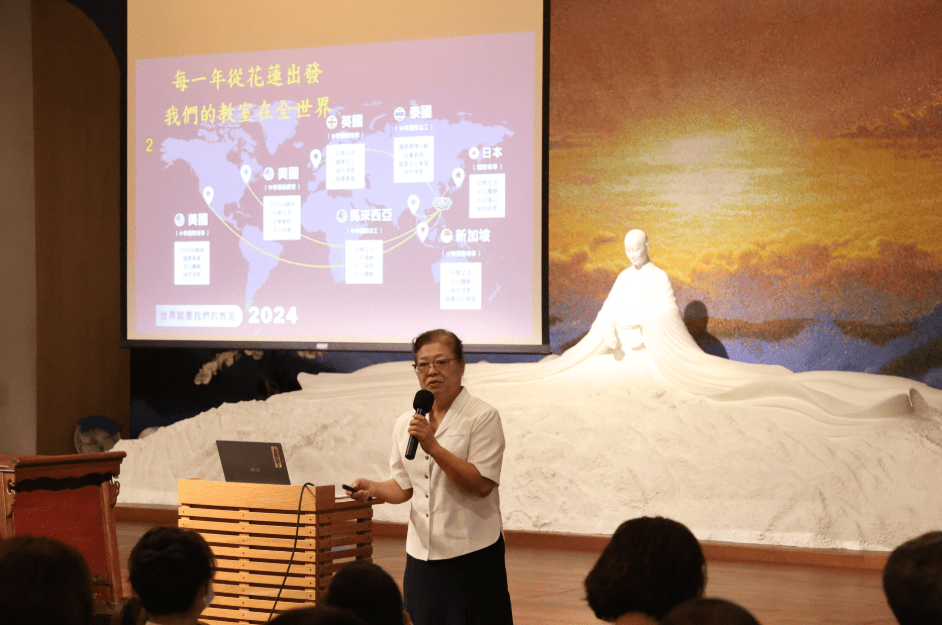 「教育能翻轉生命!」第三堂課由慈大附中前任校長,現任慈濟教育執行長辦公室顧問李玲惠分享每年學校的國際修學服務,把從「學」到「覺」的路線鋪到不同國家,將孩子帶到全世界。在海外志工服務的歷程中,看見慈濟真實法的力量,看見慈濟世界帶來的真善美,讓孩子知道:當有人離不開偏鄉,慈濟人就自動走進他的苦難中。