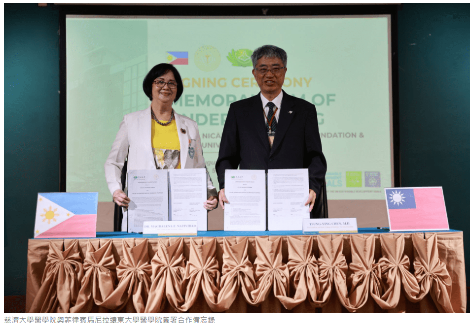 八月十八日,慈濟大學醫學院與菲律賓馬尼拉遠東大學(Far Eastern University – Dr. Nicanor Reyes Medical Foundation )醫學院簽署合作備忘錄(MOU),由遠東大學教務副校長瑪格達萊娜・納蒂維達(Dr. Magdalena F. Natividad)和慈濟大學副校長兼醫學院院長陳宗鷹代表簽署,象徵跨國醫學教育合作正式展開,共創跨國醫學教育新篇章。