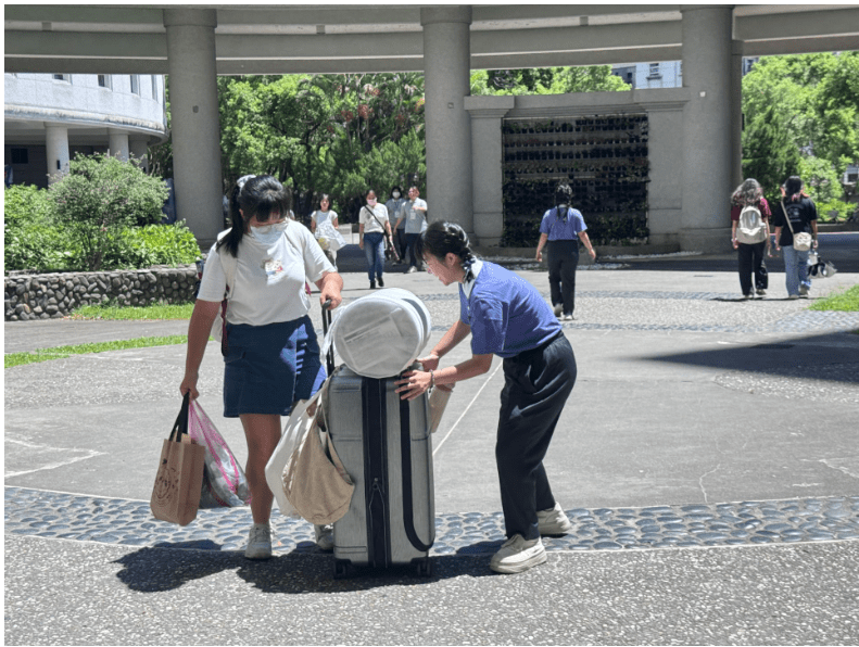 在宿舍區,學長姊們化身貼心小幫手,協助推車、搬行李,甚至主動詢問是否需要協助,醫技系二年級林鈺娟同學表示:「我們特別幫助獨自前來或行李較多的新生,主動詢問是否需要協助。」學校也準備免費午餐,邀請家長與新生一同體驗校園學餐。