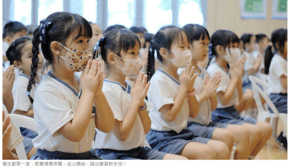 典禮隨著全體肅立、唱會歌而展開。會場中莊嚴而溫暖的旋律,提醒孩子們要以感恩心迎接新學期,從心開始,踏出學習新步伐。