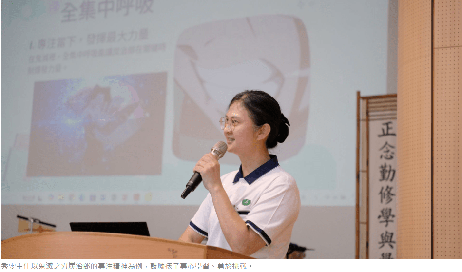 教務處顏秀雯主任以《鬼滅之刃》炭治郎的專注精神為例,鼓勵孩子「全集中!新學期!」專心學習、勇於挑戰。從語文、數理到國際遊學課程,學校致力於讓孩子在多元中拓展視野。