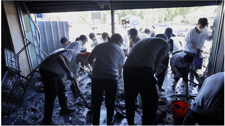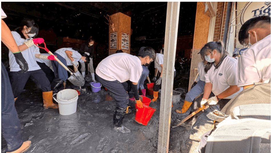 慈濟基金會在網路號召愛心民眾響應,為光復鄉親清除淤泥,適逢教師節假期,慈大附中廖逸貞校長帶領百餘位親、師、生加入[樺加沙風災]災後復原用雙手、一顆顆溫暖的心,展現愛的行動力。